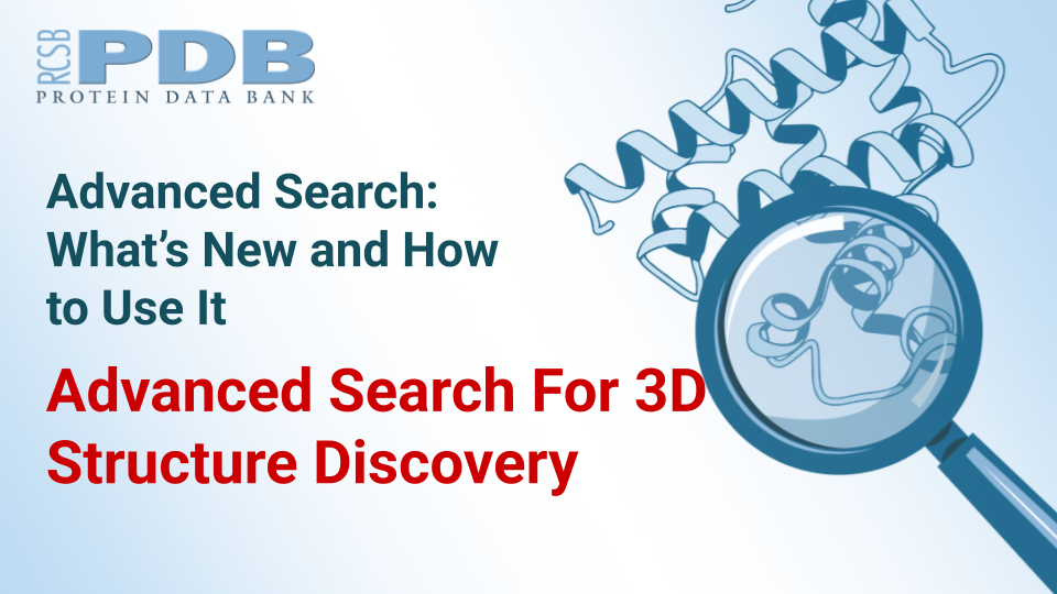 The RCSB PDB Advanced Search tool allows users to build precise and complex queries of the PDB archive. Learn how to build complex queries, including 3D structural searches that are integrated with interactive Mol* visualization and how to use the Chemical Search option.